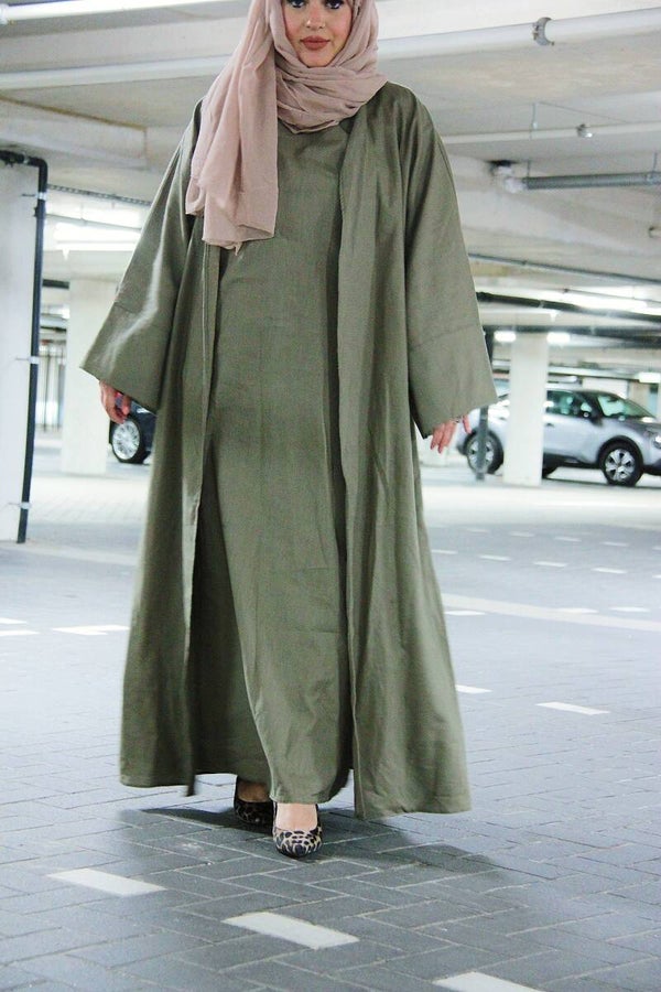 Onze 100% innen abaya set nu ook te verkijgen in groene kleur